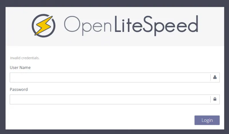 At this point, LiteSpeed should be fully installed and accessible from your browser.