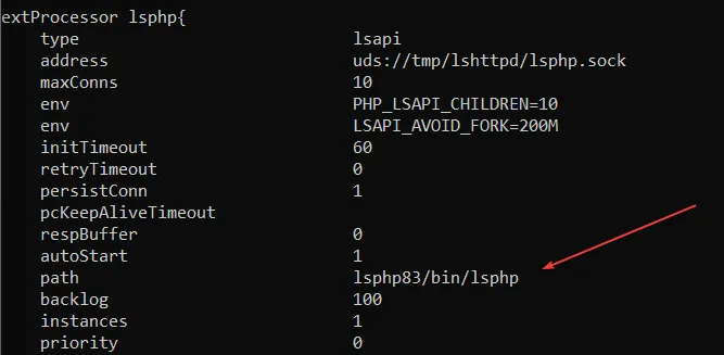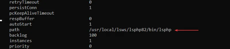 Edit the OpenLiteSpeed configuration file to replace any old PHP binary with the new PHP 8.2 LSAPI binary.