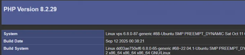 Replace YOUR_SERVER_IP with your server’s actual IP.- You should see a page displaying PHP information. At the top, it should show: