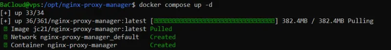 In this step, you will start Nginx Proxy Manager using Docker Compose and verify that the container is running correctly.