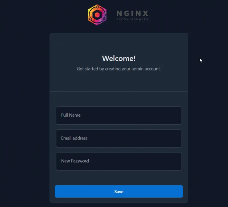 When accessing the Nginx Proxy Manager admin interface for the first time, you will be prompted to create an admin account.