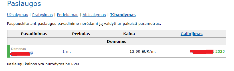 - Bet kokius pranešimus su prierašu "Svarbu!" galite saugiai ignoruoti. Domeno galiojimo laikas yra užfiksuotas Domreg registre ir jis yra perkeliamas kartu su domenu. Domeno galiojimo laikas gali keistis tik tokiu atveju, jei reikia atlikti užsakovo keitimą, t.y. nesutampa užsakovo duomenys Domreg registre ( jei domenas anksčiau buvo pirktas ir neatliktas užsakovo keitimas ).