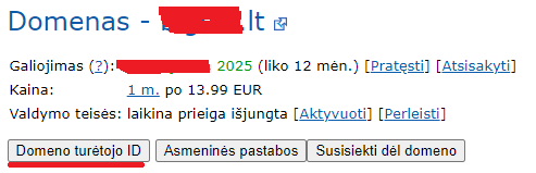 1.3 Atidariusiame lange paspauskite ant "Domeno turėtojo ID":