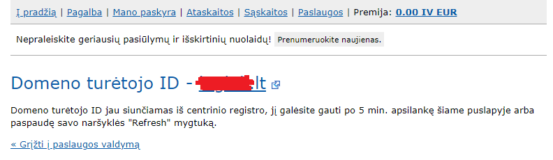 1.5 Domeno turėjojo ID bus pateiktas šiame puslapyje, po kelių minučių atnaujinkite naršyklės langą: