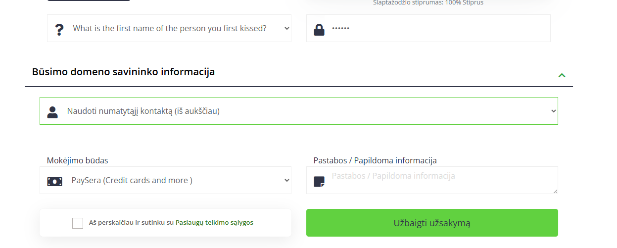 - Jūs neprivalote pateikti jokios domeno išsikėlimo priežasties, tai yra perteklinė informacija.