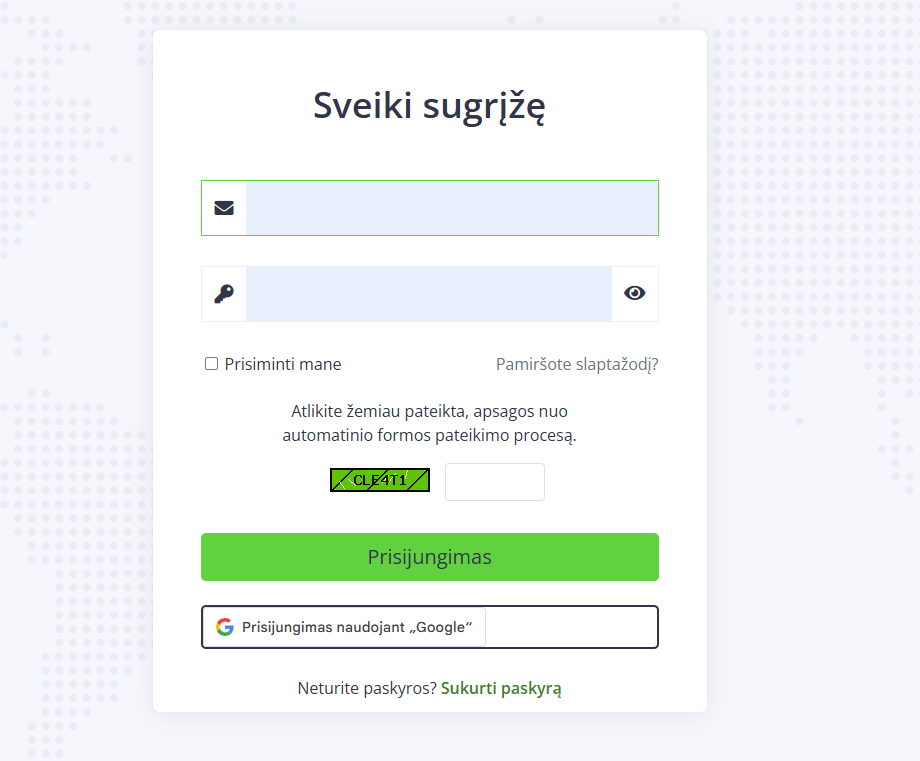 Pirmasis žingsnis, kurį reikia atlikti – prisijungti prie klientų zonos: